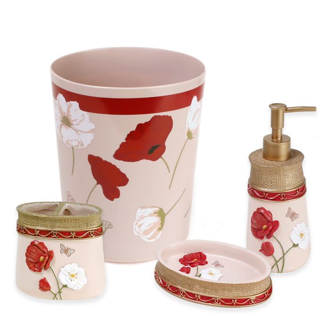 Constructed of soft and absorbent cotton this beautiful bath accessory features lovely poppy imagery and a stylish red border.